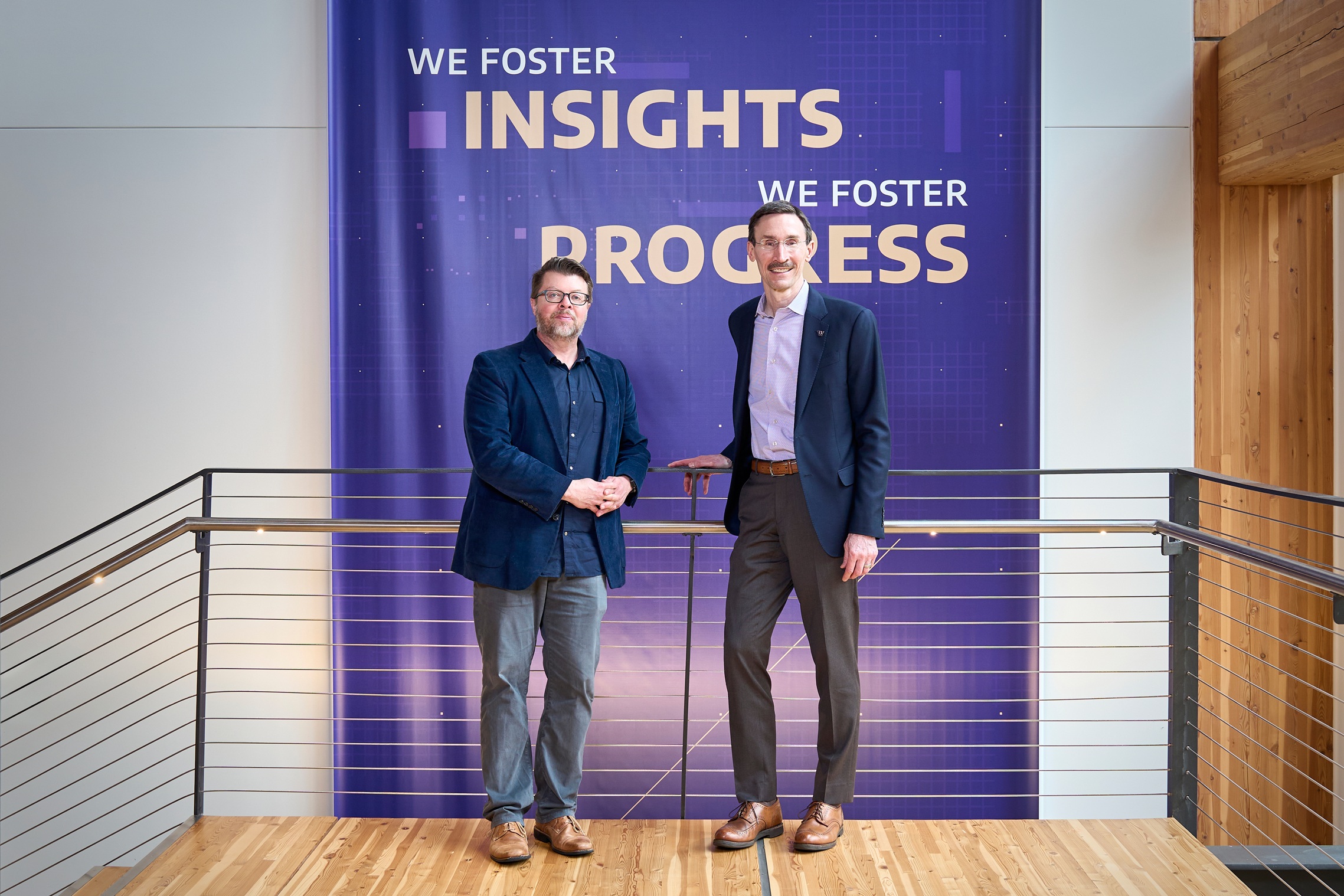 Robert Neer, shown with UW Foster School of Business Dean Frank Hodge, is an inaugural member of the Foster MBA mentorship program that launched in 2014.