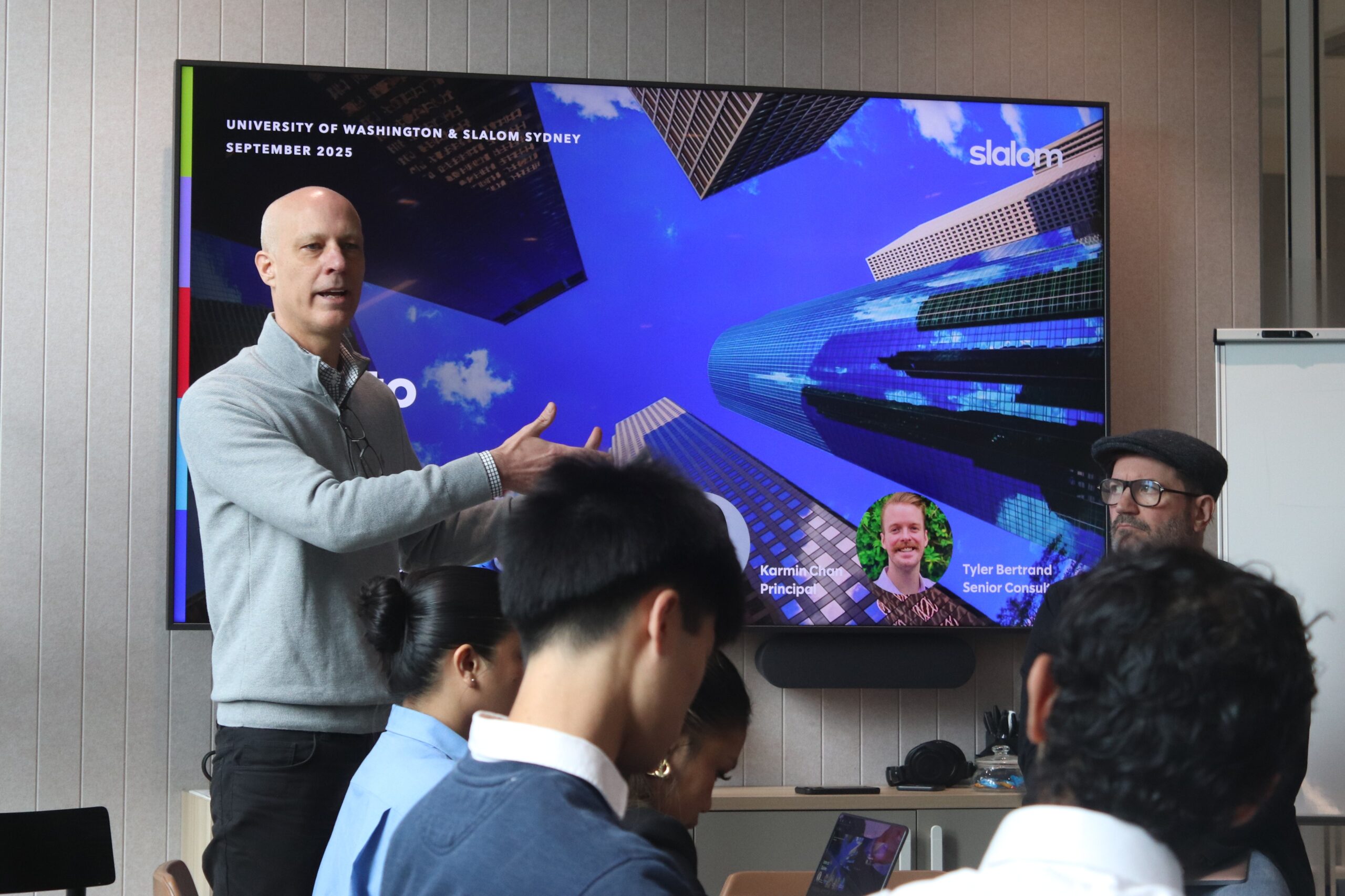 Slalom Consulting General Manager Gunnar Schultz and Director Darren Hill sharing insights with Foster School students.
