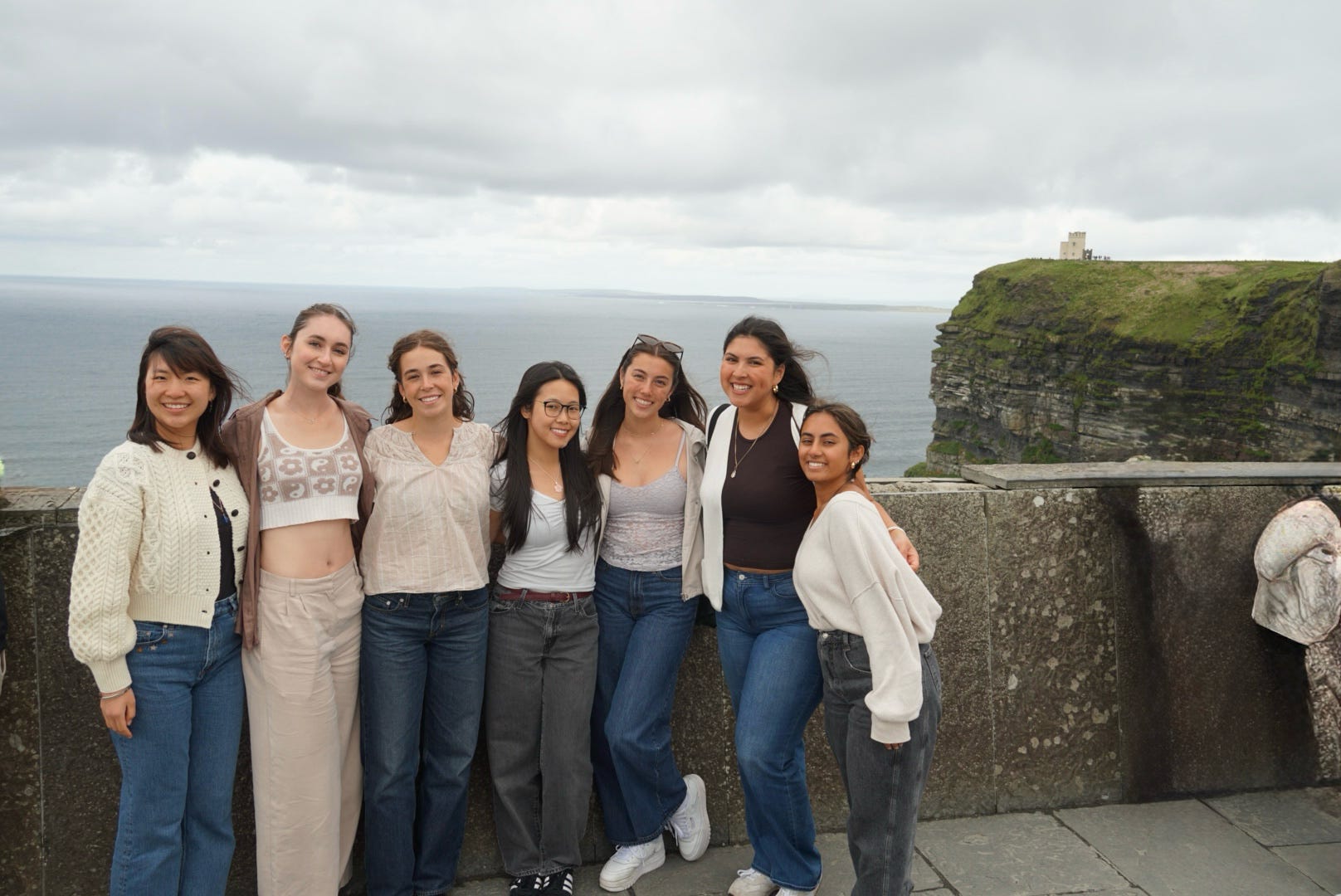 Kathryn (third from right) with friends during a trip to the Cliffs of Moher. (Photo by Kathryn Brandeau)
