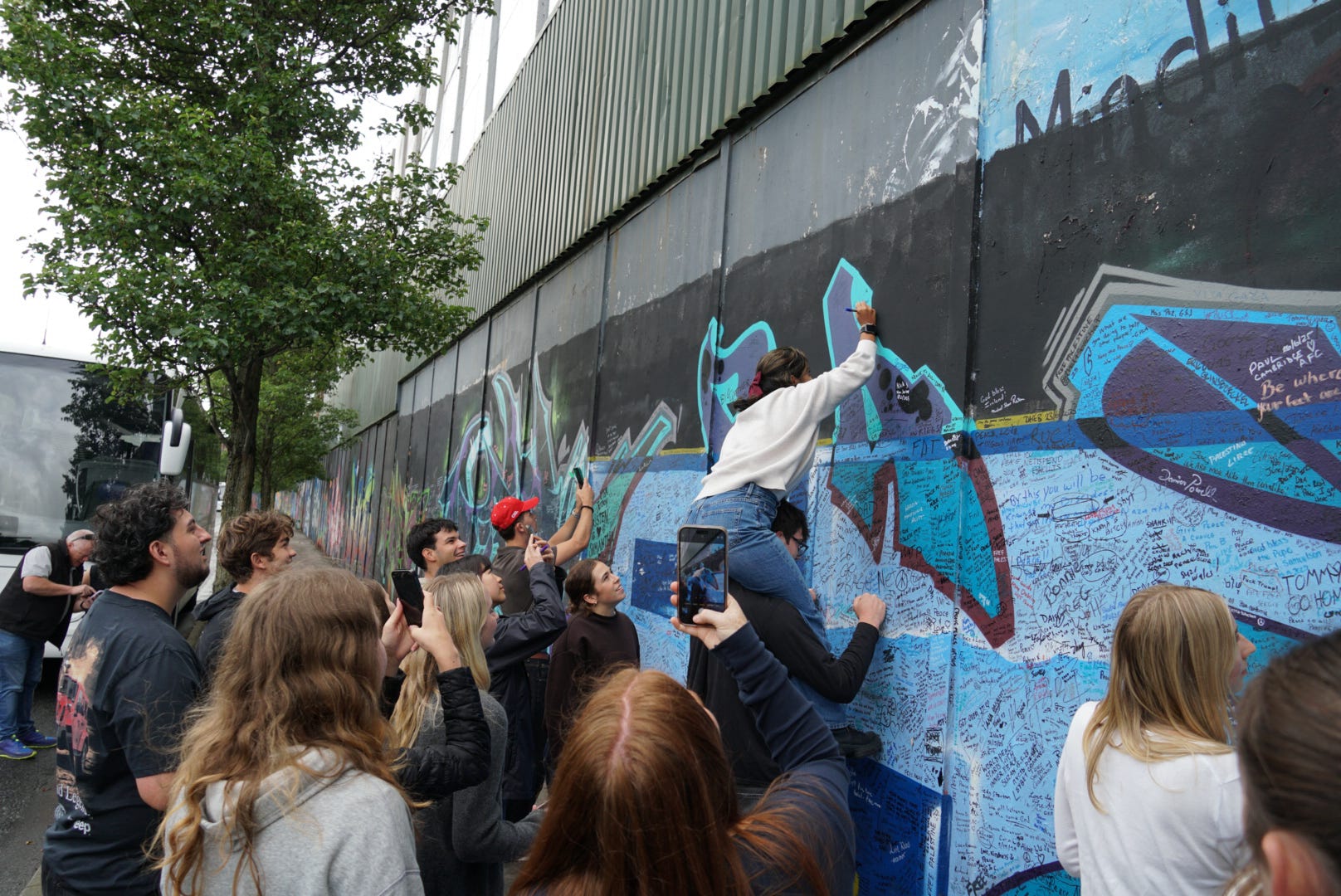 Students visit the Peace Walls in Belfast, admiring the art and leaving messages. (Photo by Amber Haiwen)