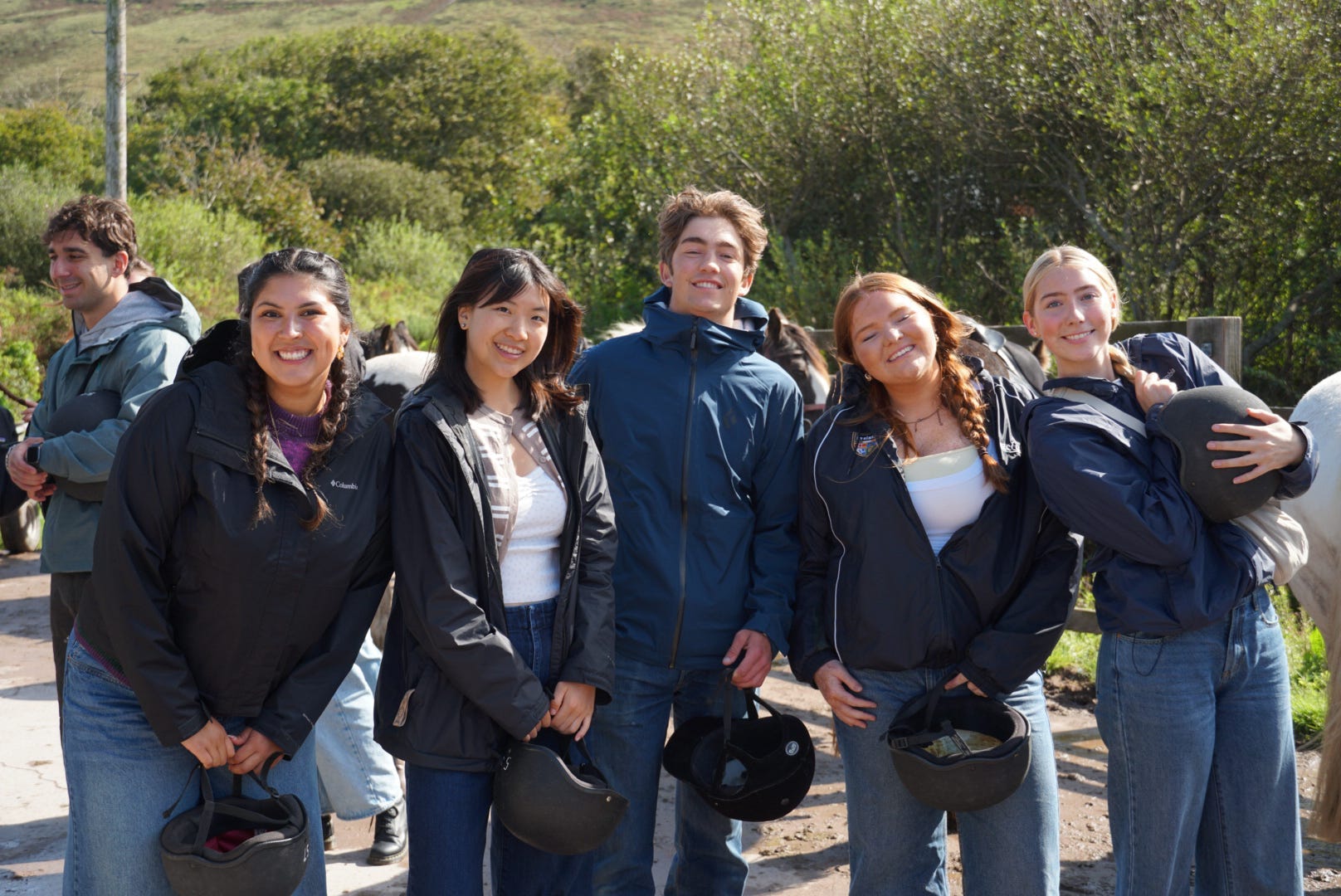 Amber (second from left) and other students prepare for an exciting day of horseback riding. (Photo by Amber Haiwen)